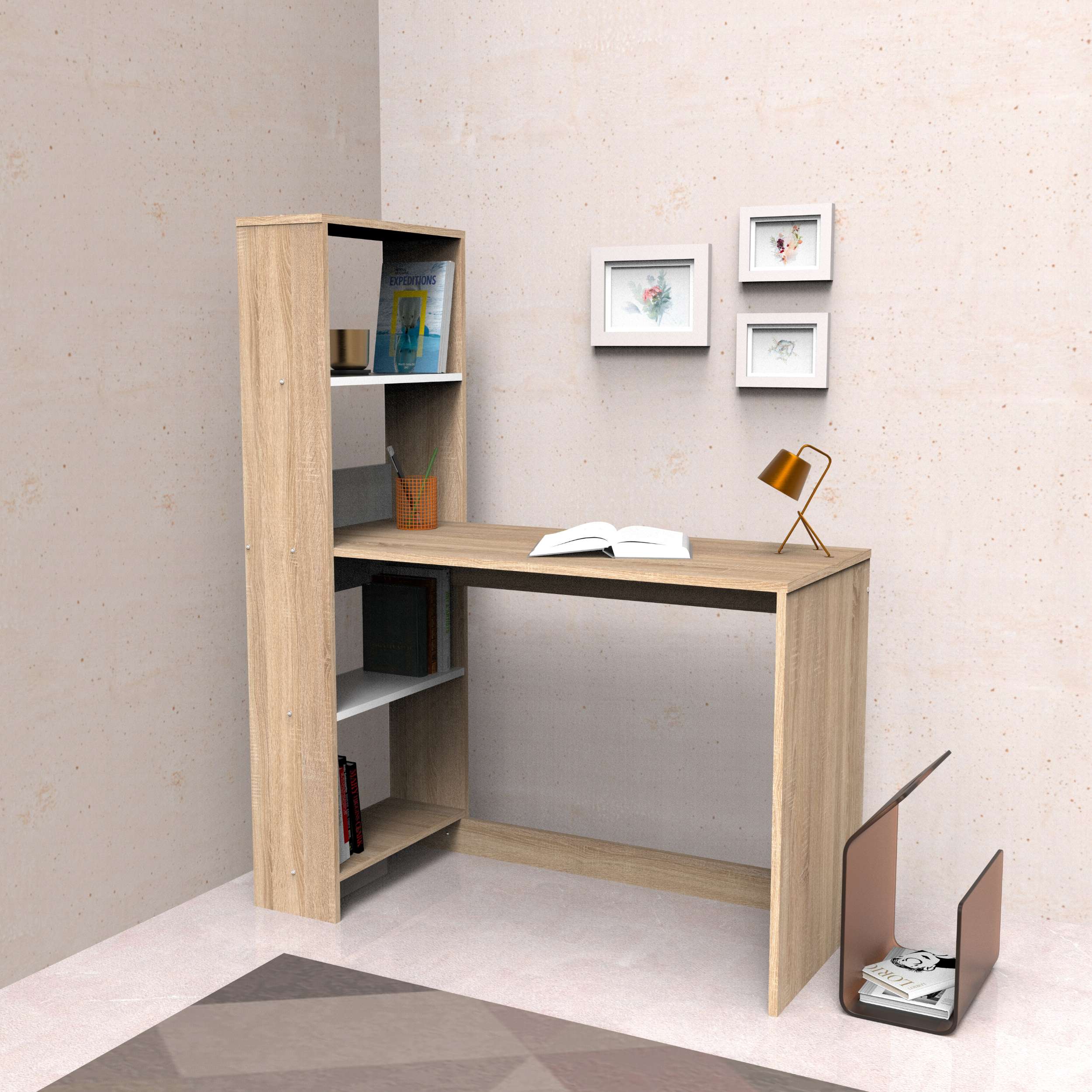 Fusion Çalışma Masası, modern tasarım ve işlevselliğin mükemmel birleşimini sunar, hem ev hem de ofis ortamları için idealdir. Kitaplık yan kısmıyla şık bir sergileme ve depolama çözümü sunarken geniş bir çalışma alanı sağlar. Fusion Çalışma Masası, her yaş ve mekan için ideal bir çalışma çözümüdür.